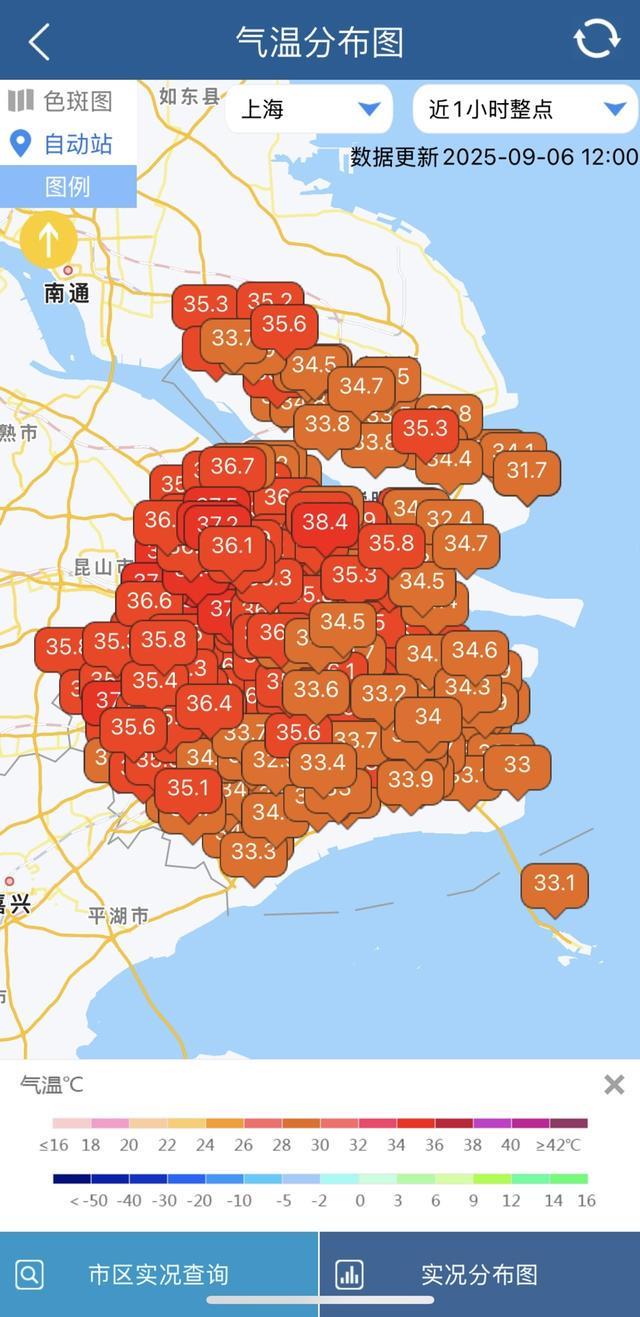 10时35分,徐家汇气象站的实况气温就已轻松越过高温线,升到了35.1℃。截至今天,今年夏天,上海高温日数已达48天,位列“史上第四”,而在上海百年气象记录史上,高温日数最多的一年为1934年,该年出现了55个高温日。