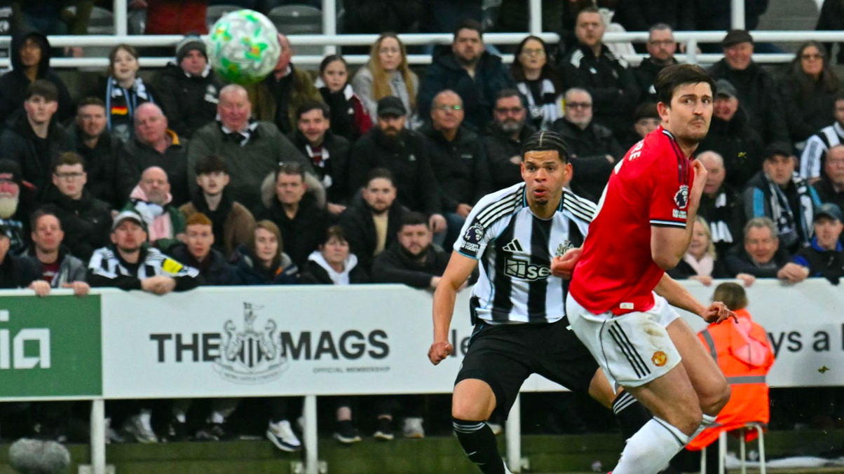 第90分钟,纽卡斯尔本场半场断球,特里皮尔送出妙传,替补出场的奥苏拉踉踉跄跄勉强避免了皮球出界,面对马拉西亚和马奎尔的防守,奥苏拉一脚冷射,攻破了曼联的球门。